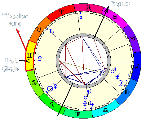 BOŞ BİR HOROSKOP ÖRNEĞİ Gün boyunca derece derece ufuk çizgisi ilerler, buna bağli olarak birkaç saat ara ile ufukta yükselmekte olan burç değişir. Ayrica evlerin dereceleri de farkliliklar gösterir. Bir ev, 30 dereceden fazla veya az olabilir.. İşte değişen şekli ile, doğduğumuz tarih, yer ve saat itibariyle, o anda tesbit edilen şekil de kişiye ait özel yildiz haritasidir...(horoskop) Veya kişinin beyin programinin resmidir diyebiliriz... Veya kaderi...! ( bkz. Kişiye özel beyin programı haritası ) Bir Yildiz haritasinda, Başucu noktasi, Ufuk çizgisi ve ev çizgileri çok önemlidir. Başucuna düşen bir planet, adeta yaşaminiza işik tutar, hayatimizi kendi manasi istikametinde yönetir. Ufuk çizgisinin başlattiği 1.ci eve düşen bir planet ise, kişiliğinizden tipinize kadar belli özellikler verir. Ayrica her hangi bir planet, en güçlü etkisini bir eve girerken ve bir evden çikarken ortaya koyar. Dolayisiyla bu çizgilerin sağlikli olmasi için, doğum saati ve tarihinin doğruluğu çok önemlidir...